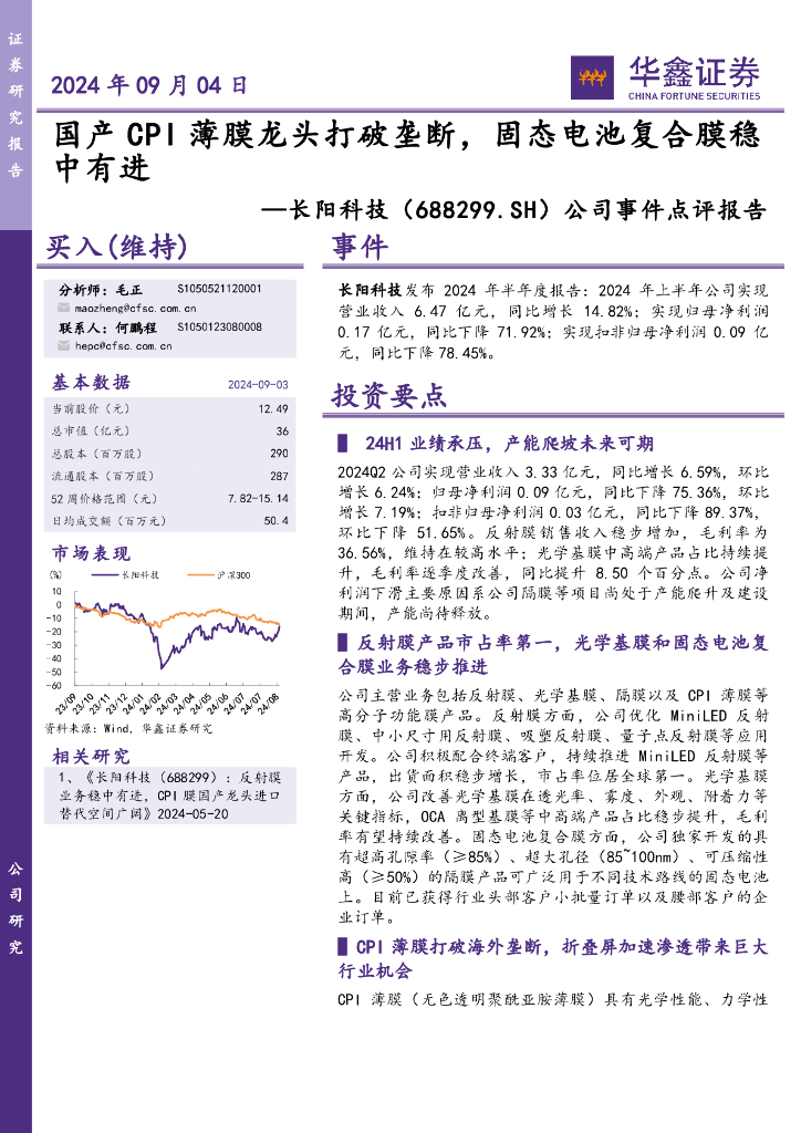 华鑫证券:长阳科技(688299)-公司事件点评报告:国产CPI薄膜龙头打破垄断,固态电池复合膜稳中有进.pdf