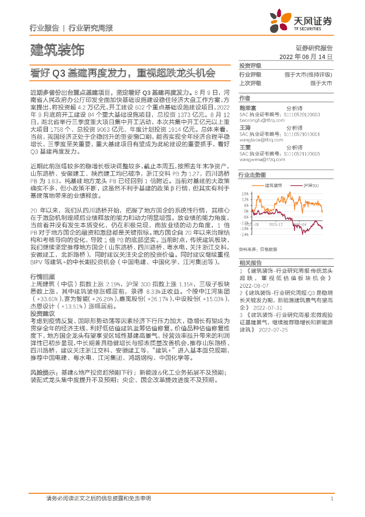 天风证券:建筑装饰行业研究周报:看好Q3基建再度发力,重视超跌龙头机会.pdf
