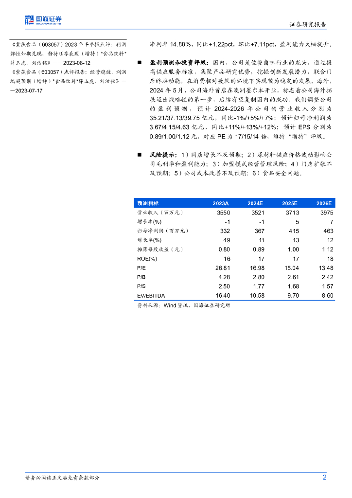 国海证券:紫燕食品(603057)-公司动态研究:Q2收入降幅环比收窄,成本优化下盈利能力改善.pdf