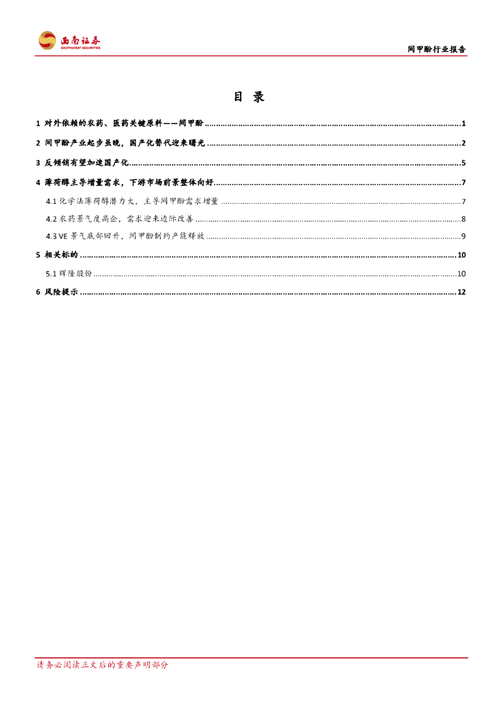 西南证券:间甲酚行业报告:间甲酚国产替代加速,下游薄荷醇盈利可观.pdf