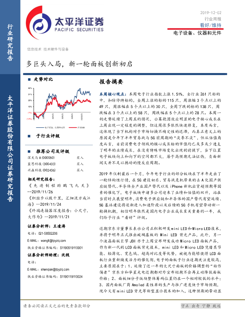 太平洋证券:电子设备、仪器和元件行业周报:多巨头入局,新一轮面板创新初启.pdf