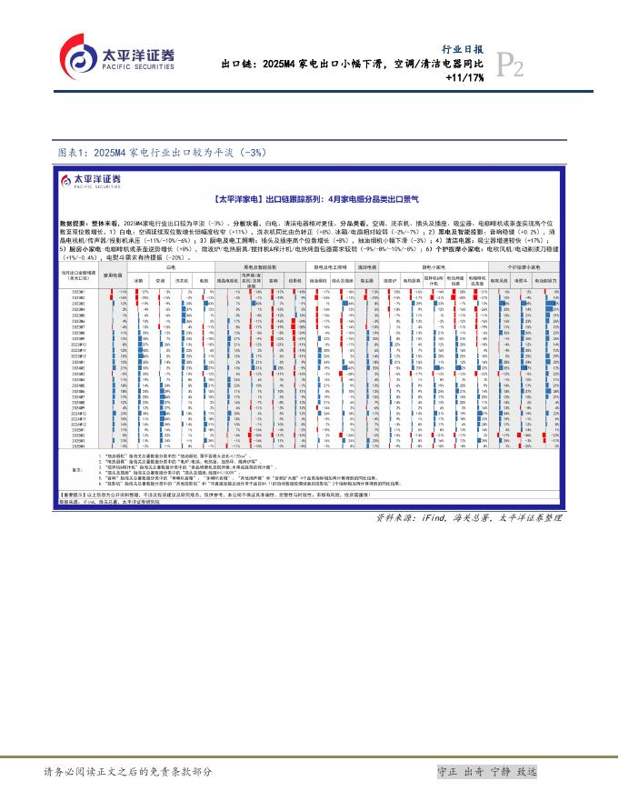 太平洋证券:家电行业日报:出口链:2025M4家电出口小幅下滑,空调/清洁电器同比+11/17%.pdf