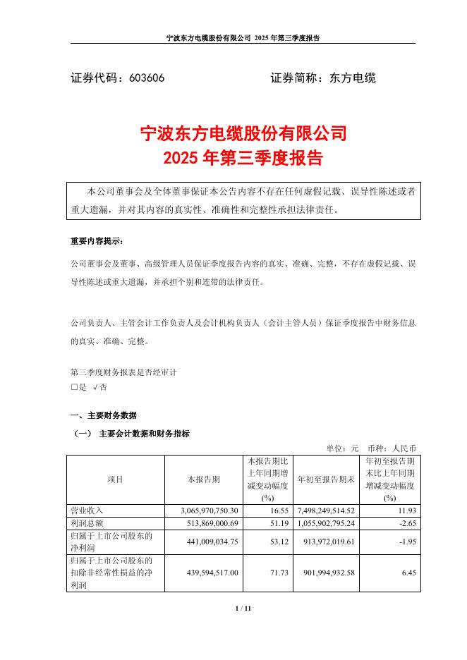603606-东方电缆:东方电缆2025年第三季度报告.pdf