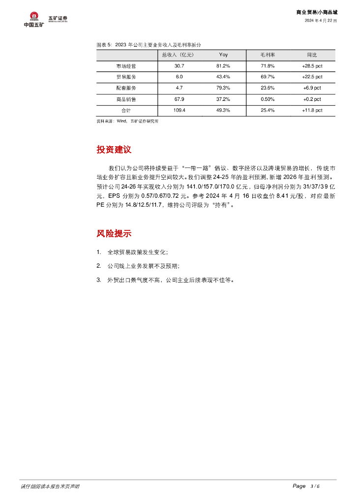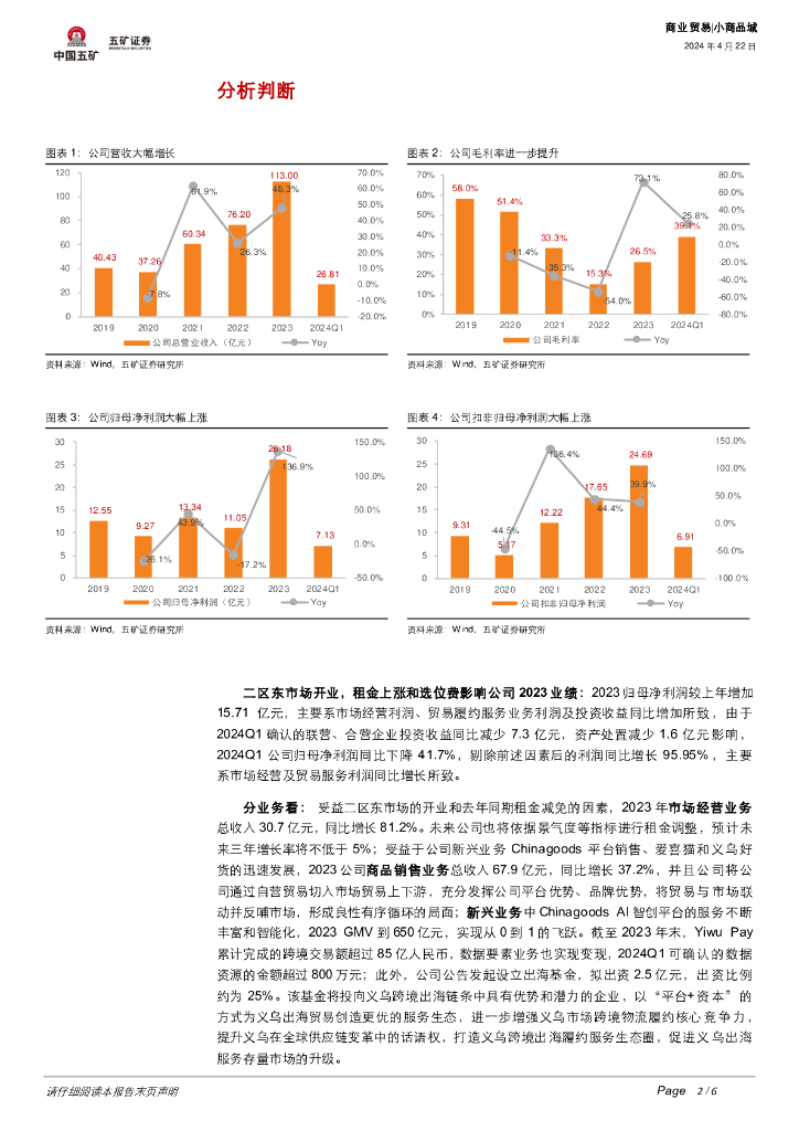 五矿证券:小商品城(600415)-2023年年报及2024年一季报点评:主营业务持续增长,线上第二曲线渐入佳境.pdf