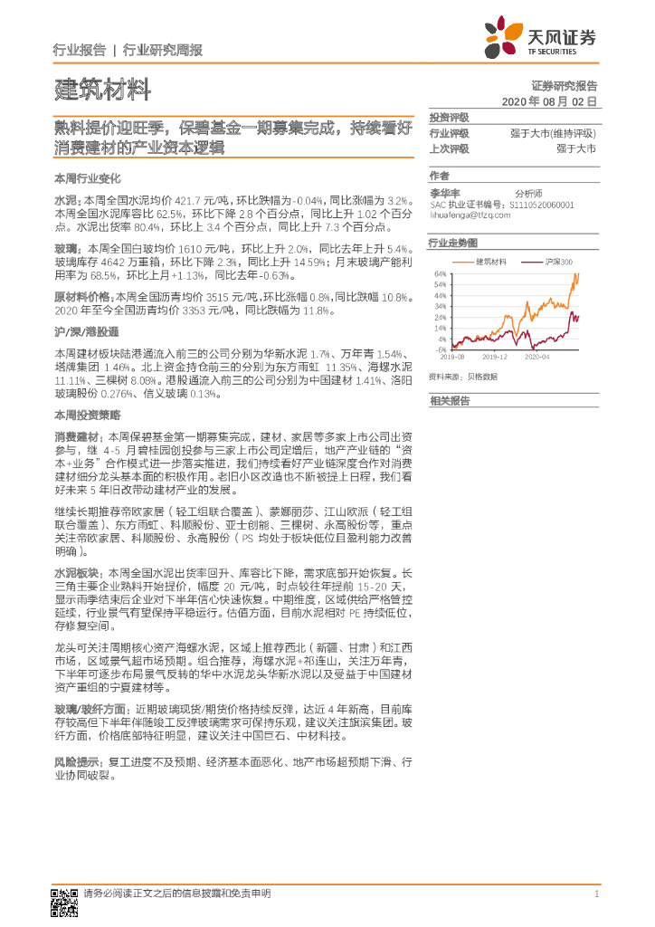 天风证券:建筑材料行业研究周报:熟料提价迎旺季,保碧基金一期募集完成,持续看好消费建材的产业资本逻辑.pdf