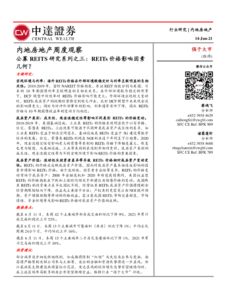 中达证券投资:内地房地产周度观察:公募REITS研究系列之三:REITs价格影响因素几何?.pdf