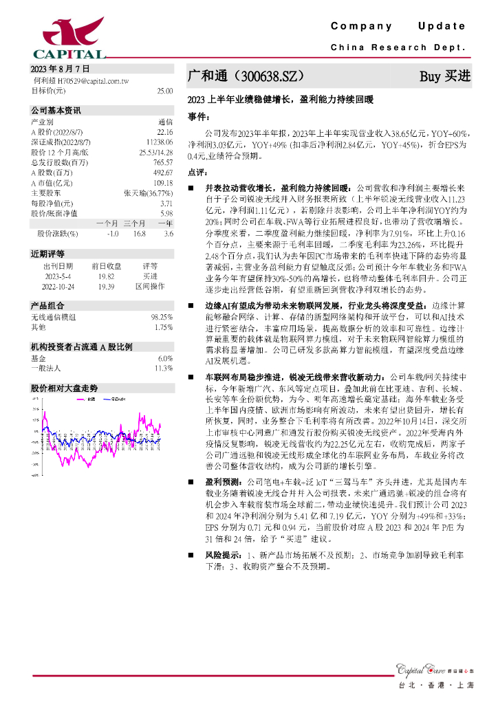 群益证券:广和通(300638)-2023上半年业绩稳健增长,盈利能力持续回暖.pdf