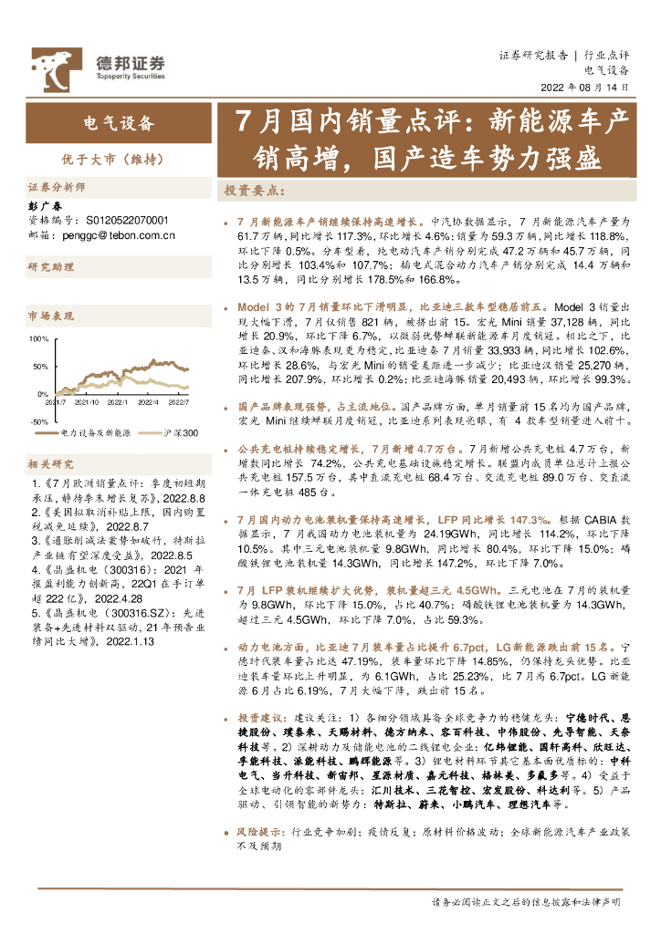 德邦证券:电气设备:7月国内销量点评:新能源车产销高增,国产造车势力强盛.pdf