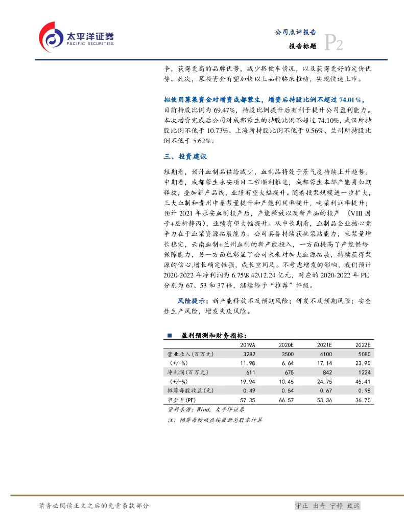 太平洋证券:天坛生物(600161)-业绩符合预期,拟增资成都蓉生到持股比例不超过74.1%.pdf