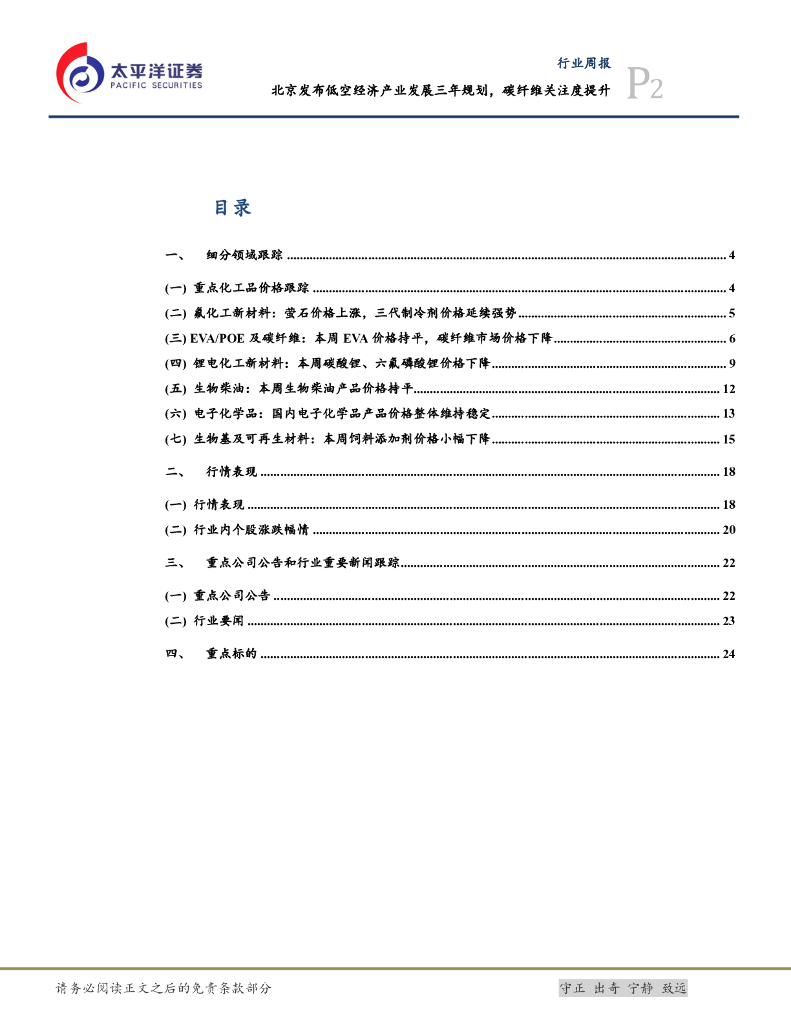 太平洋证券:化工新材料行业周报:北京发布低空经济产业发展三年规划,碳纤维关注度提升.pdf