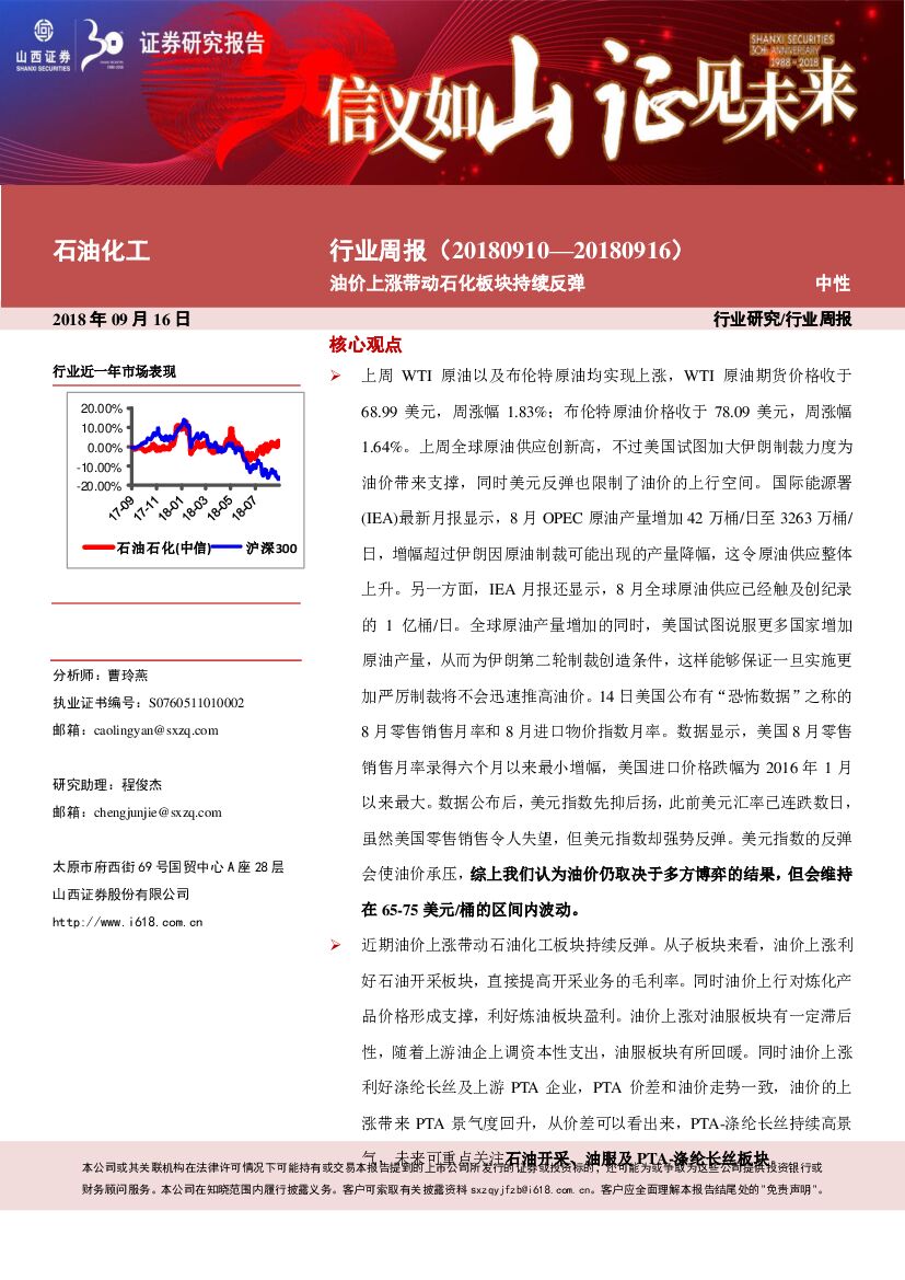山西证券:石油化工行业周报:油价上涨带动石化板块持续反弹.pdf
