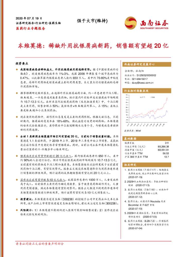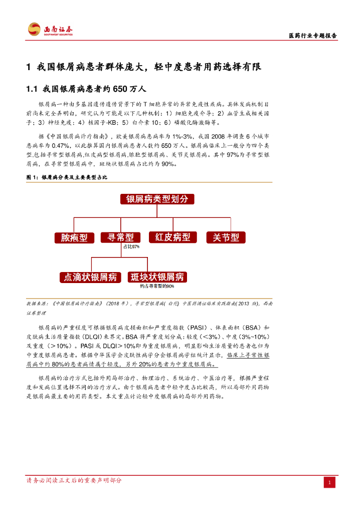 西南证券:医药行业专题报告:本维莫德:稀缺外用抗银屑病新药,销售额有望超20亿.pdf