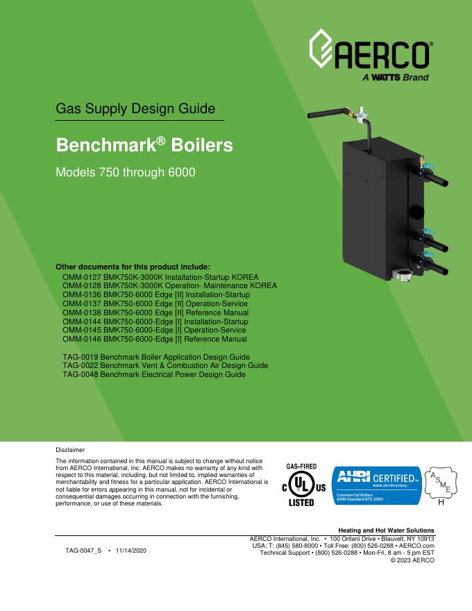 Benchmark锅炉型号750至6000 BMK系列锅炉燃气供应设计指南.pdf