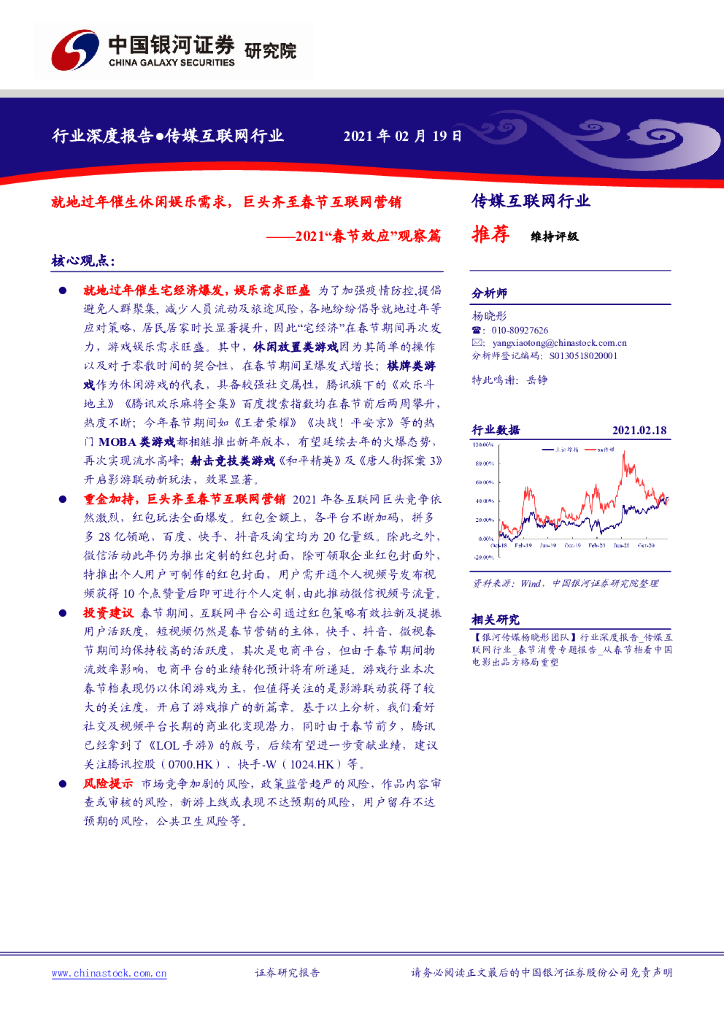 中国银河:传媒互联网行业:2021“春节效应”观察篇:就地过年催生休闲娱乐需求,巨头齐至春节互联网营销.pdf