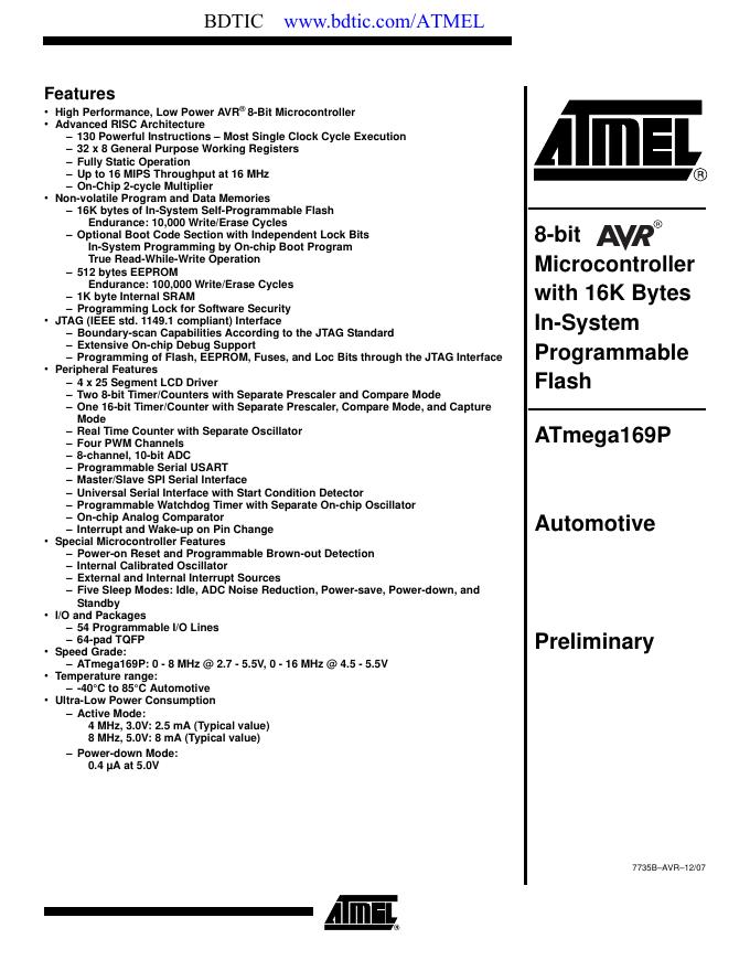 ATMEL AVR 单片机ATmega169P 数据手册资料 (1)(1).pdf