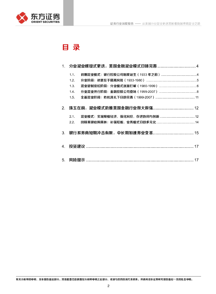 东方证券:证券行业混业经营专题:从美国分业混业更迭发展看我国券商混业之路.pdf