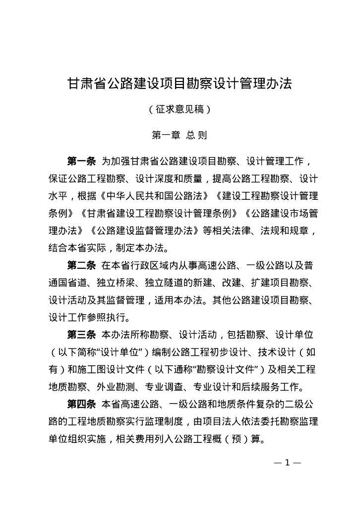 甘肃省公路建设项目勘察设计管理办法(征求意见稿).doc
