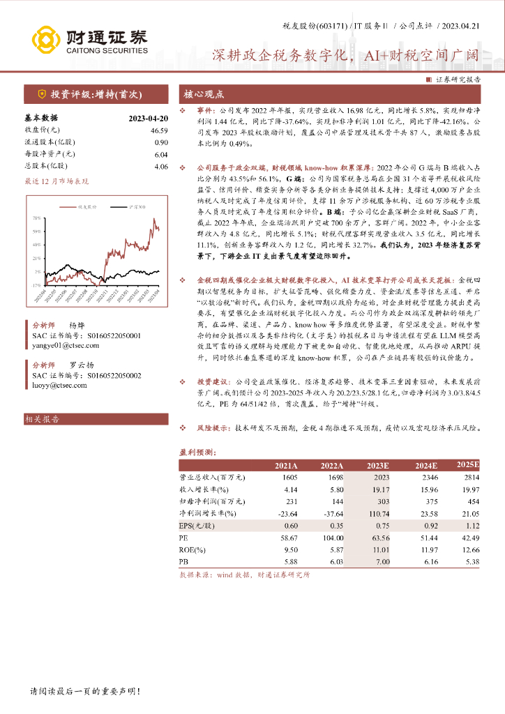 财通证券:税友股份(603171)-深耕政企税务数字化,AI+财税空间广阔.pdf