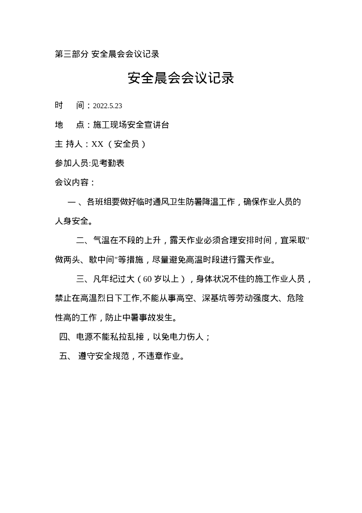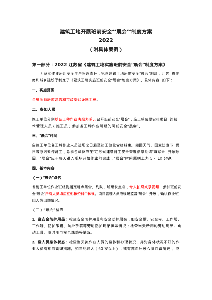 建筑工地开展班前安全“晨会”制度方案2022年.doc