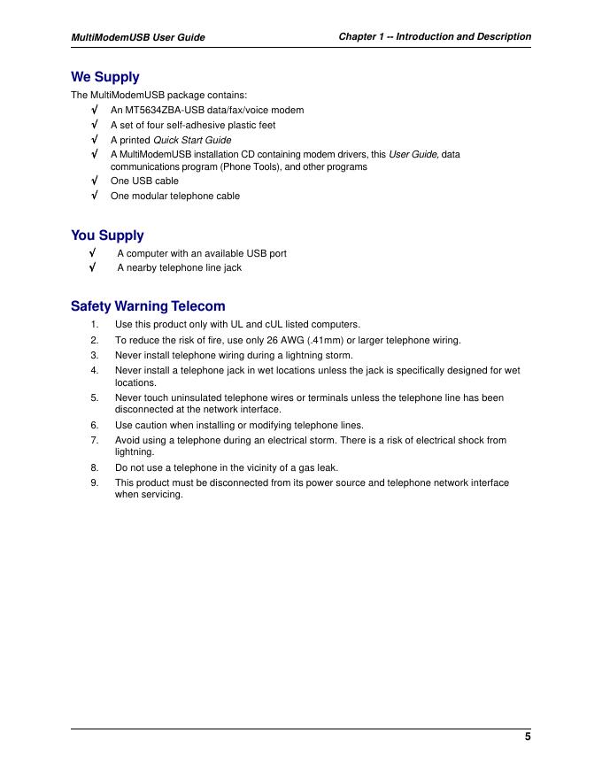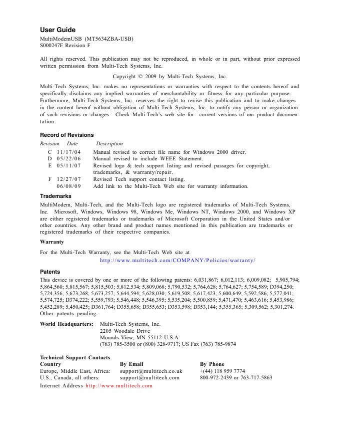 MultiModem® USB 56k Data/Fax Modem with USB MT5634ZBA-USB Data/Fax Modem User Guide User Guide.pdf