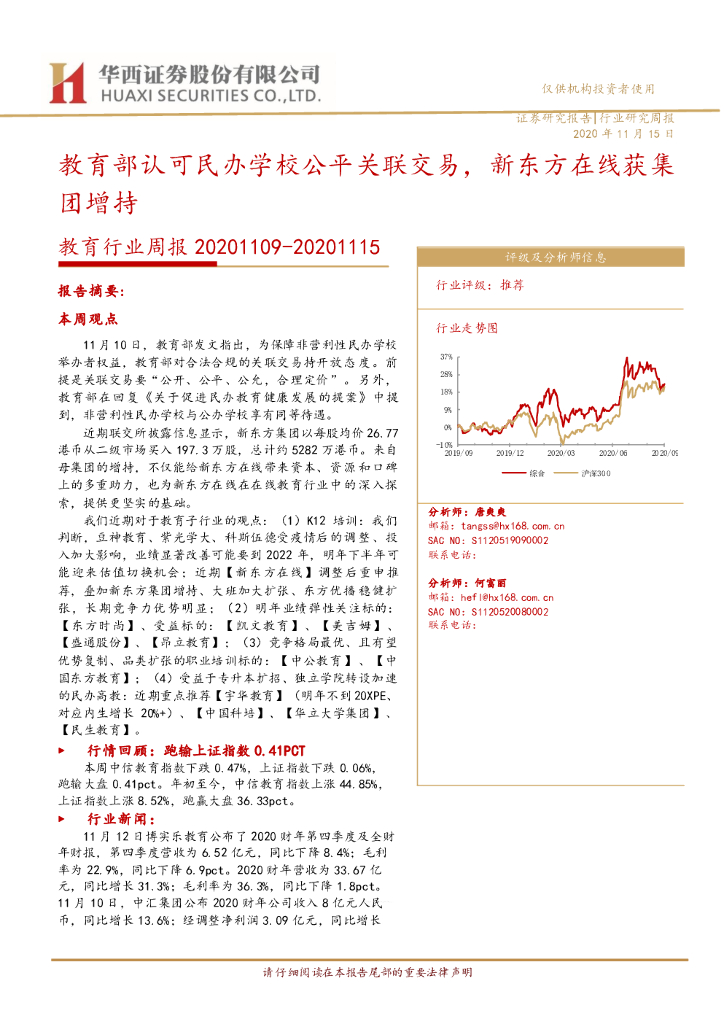 华西证券:教育行业周报:教育部认可民办学校公平关联交易,新东方在线获集团增持.pdf