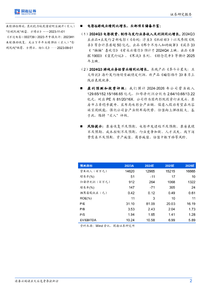 国海证券:万达电影(002739)-公司动态研究:内容板块表现亮眼,期待春节档带动大盘.pdf