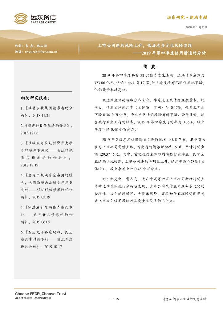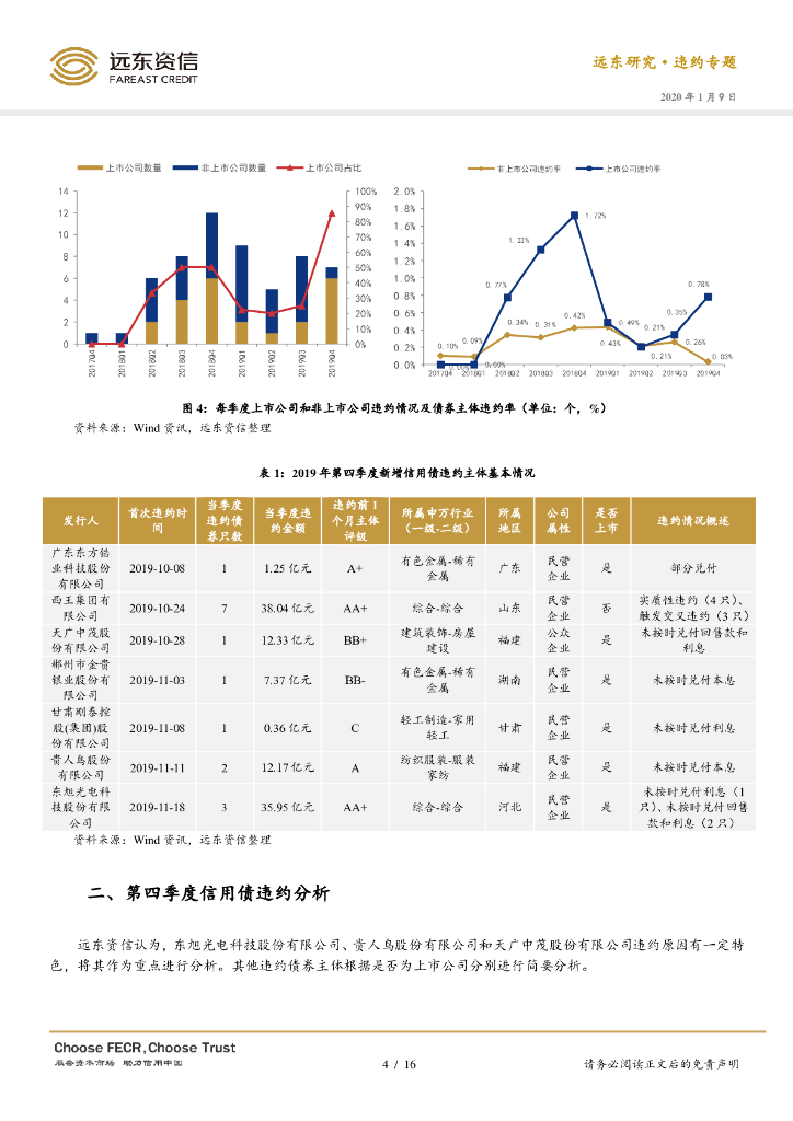 远东资信:上市公司违约风险上升,低层次多元化风险显现——2019年第四季度信用债违约分析报告.pdf