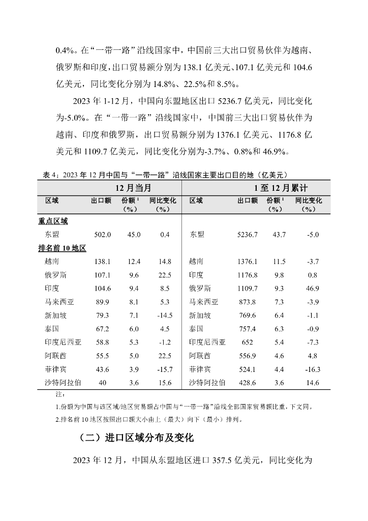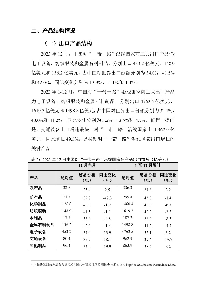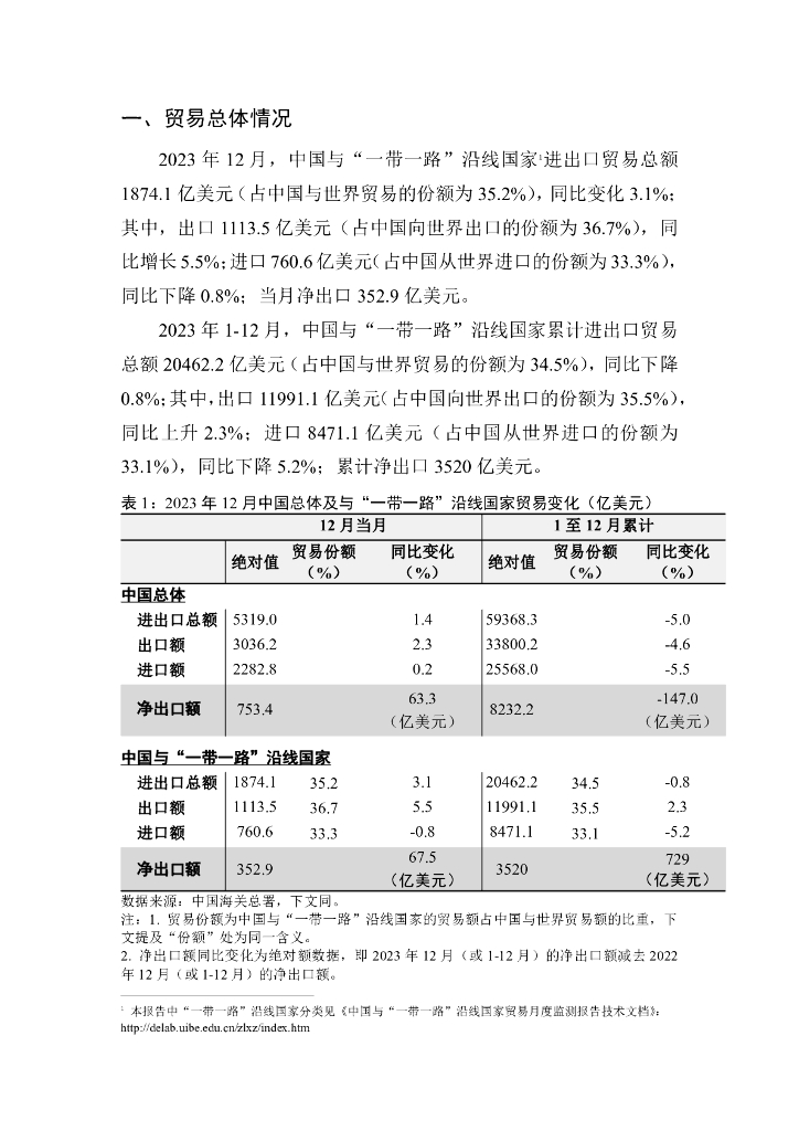 对外经济贸易大学:中国与一带一路沿线国家货物贸易月度监测报告(2023年1-12月).pdf