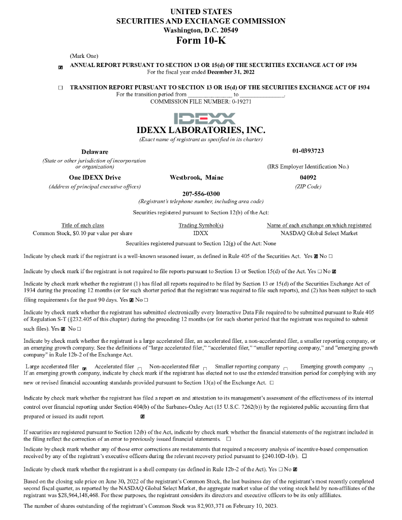 IDEXX Laboratories, Inc.(IDXX)2022财年年度报告(英文版).pdf