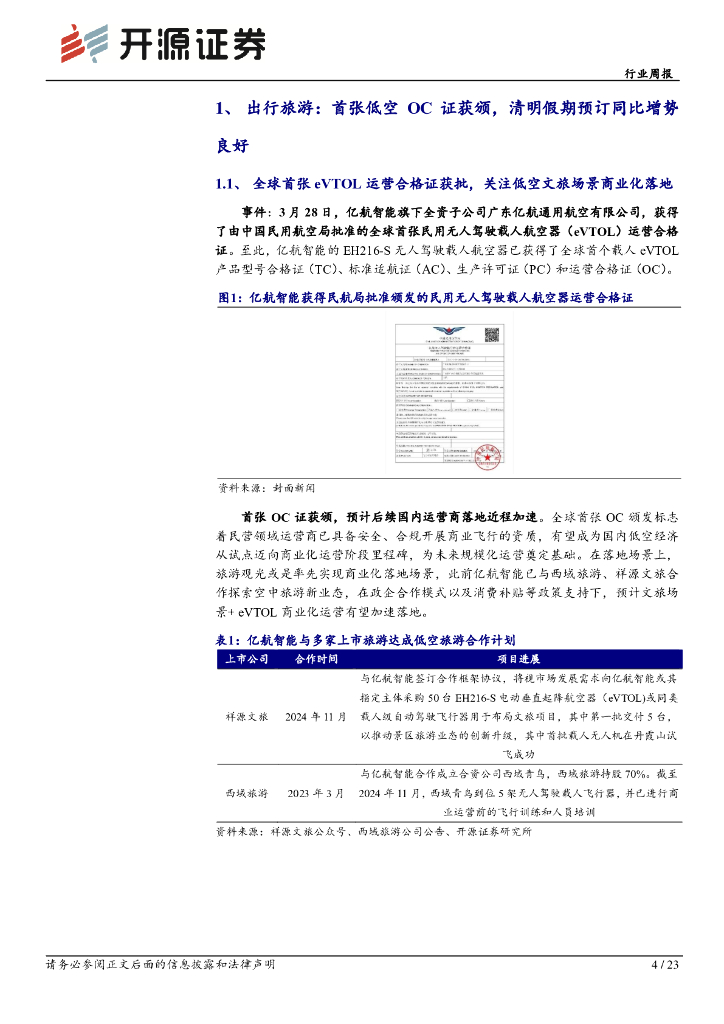 开源证券:电力设备行业周报:低空经济行业周报(第三十六期):中国移动主导首个低空经济共享设备标准立项,多地低空经济支持政