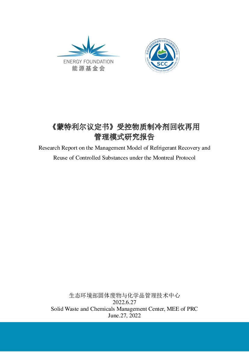 能源基金会:《蒙特利尔议定书》受控物质制冷剂回收再用管理模式研究报告.pdf