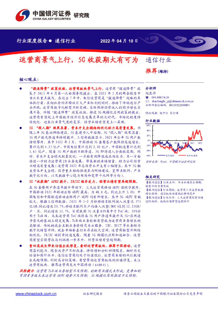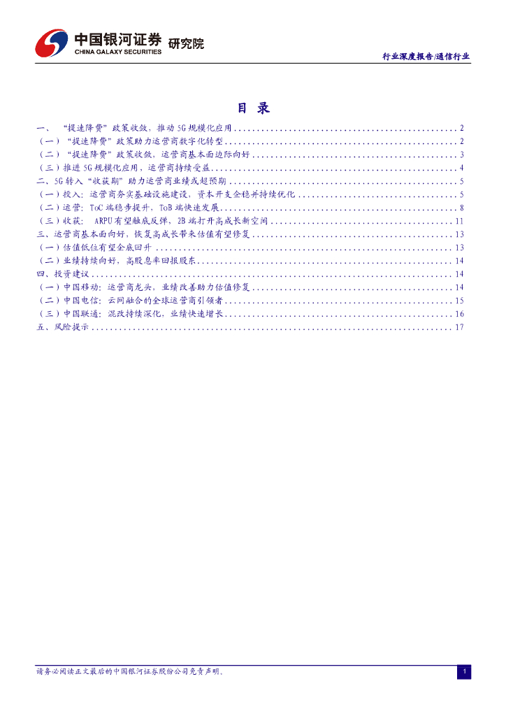 中国银河:通信行业深度报告:运营商景气上行,5G收获期大有可为.pdf