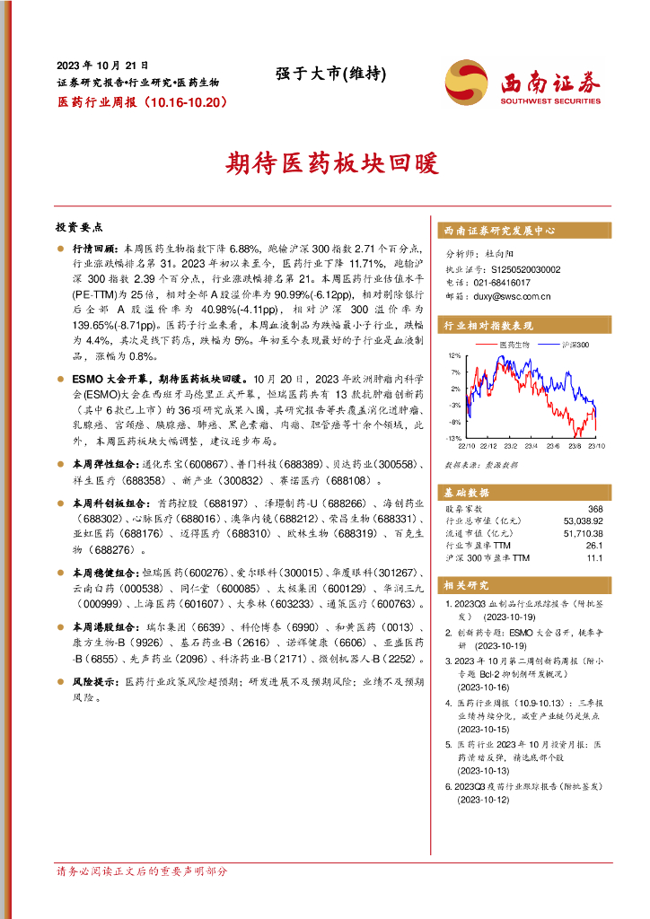 西南证券:医药行业周报:期待医药板块回暖.pdf