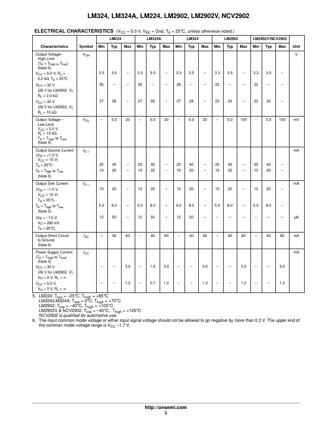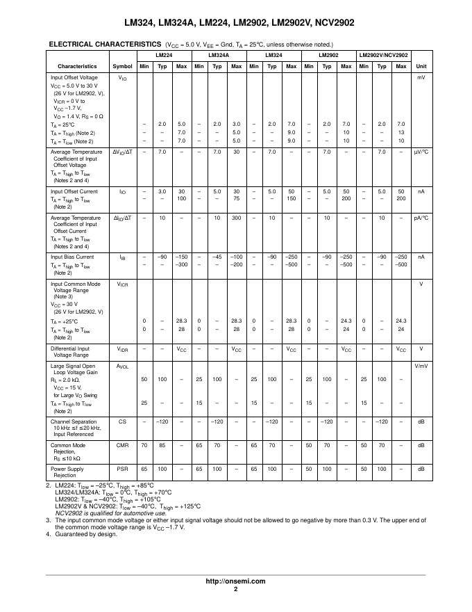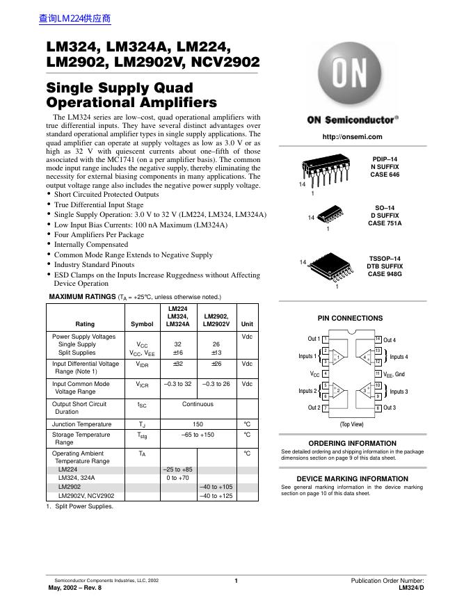ON Semiconductor LM324, LM324A, LM224, LM2902, LM2902V, NCV2902 数据手册.pdf