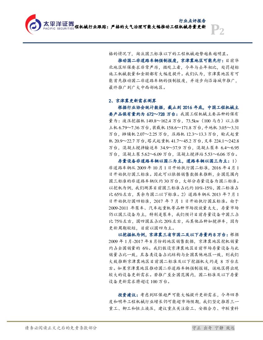 太平洋证券:工程机械行业跟踪:严格的大气治理可能大幅推动工程机械存量更新.pdf