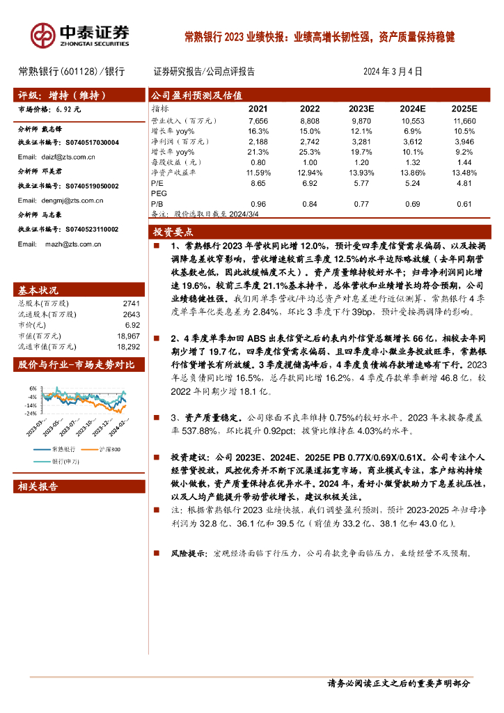 中泰证券:常熟银行2023业绩快报:业绩高增长韧性强,资产质量保持稳健.pdf