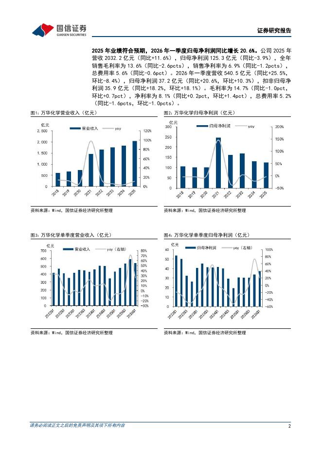 国信证券:万华化学(600309)-第一季度归母净利润同比增长20.6%,看好聚氨酯景气回升.pdf