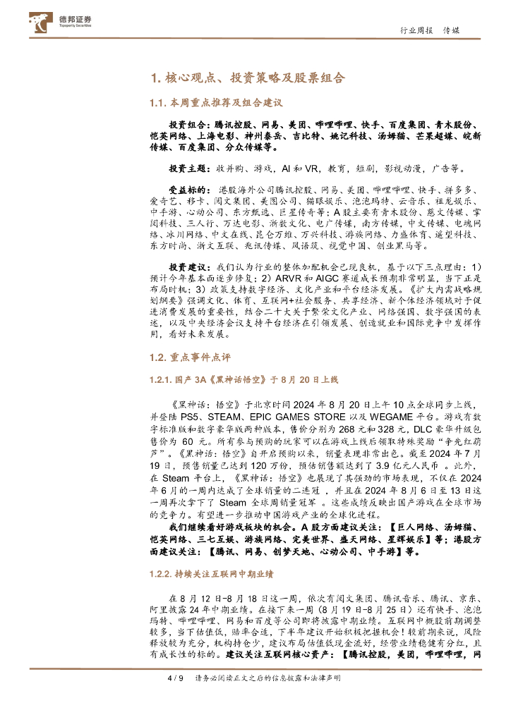 德邦证券:传媒互联网行业周报:国产3A《黑神话悟空》于8月20日上线,持续关注互联网中期业绩.pdf