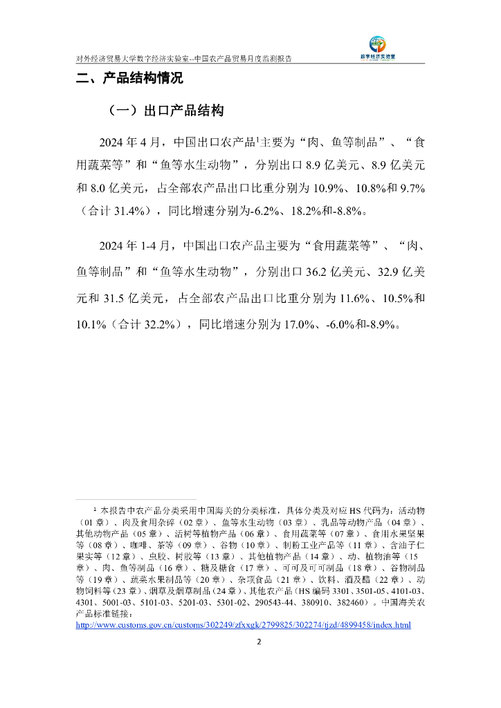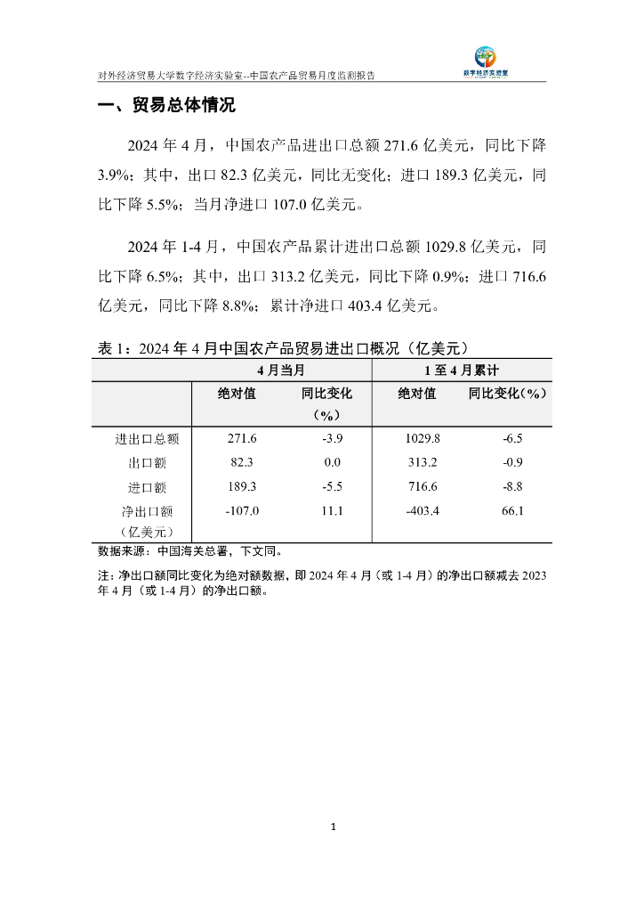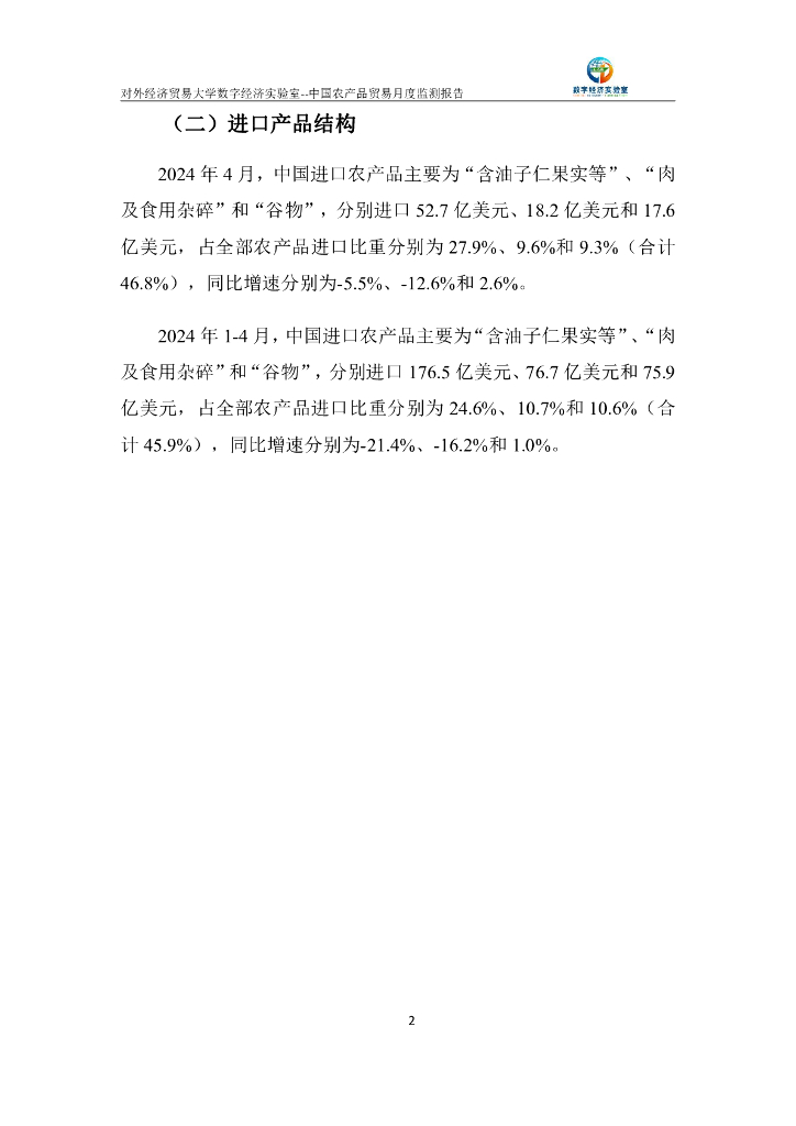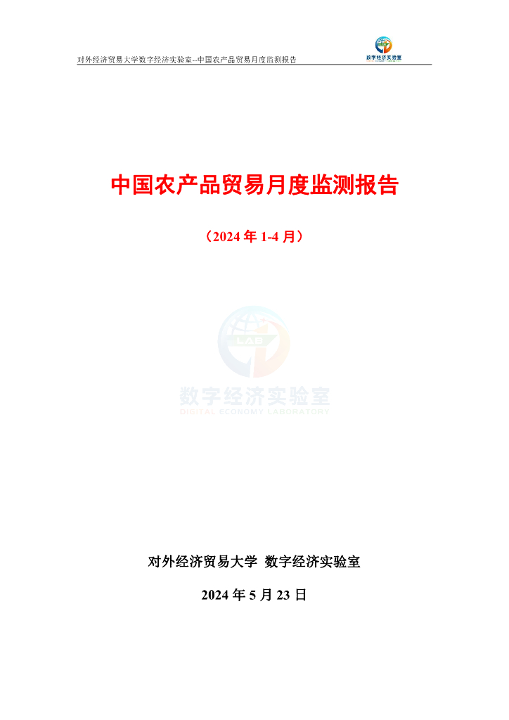 对外经济贸易大学:中国农产品贸易月度监测报告(2024年1-4月).pdf