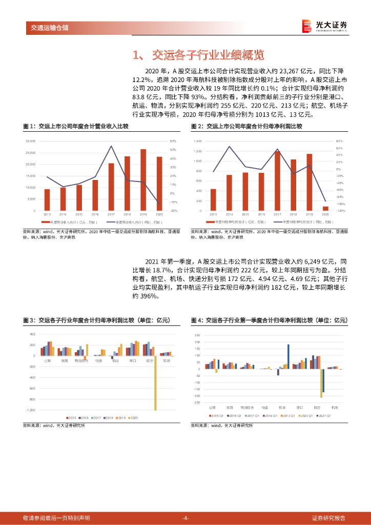 光大证券:交通运输行业2020年报及2021年一季报业绩综述:航空出行需求有望继续释放,快递行业价格战有望缓和.pdf