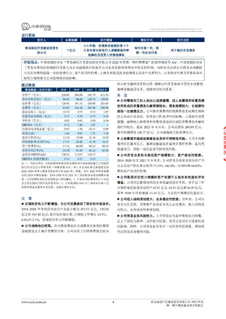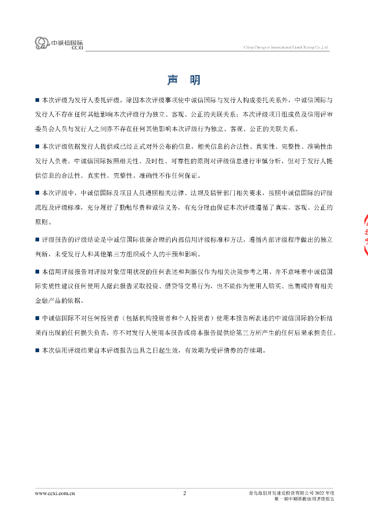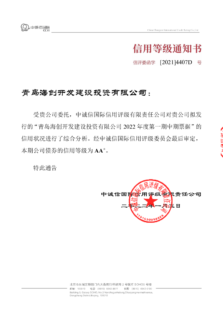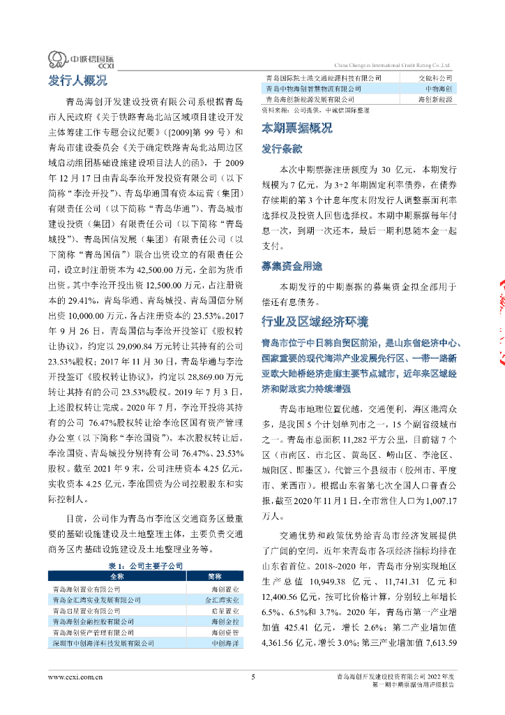 中诚信:青岛海创开发建设投资有限公司2022年度第一期中期票据信用评级报告.pdf