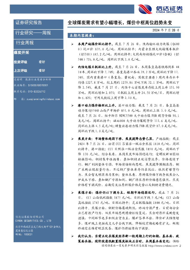 信达证券:全球煤炭需求有望小幅增长,煤价中枢高位趋势未变煤炭开采.pdf