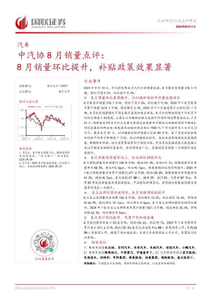国联证券:中汽协8月销量点评:8月销量环比提升,补贴政策效果显著.pdf