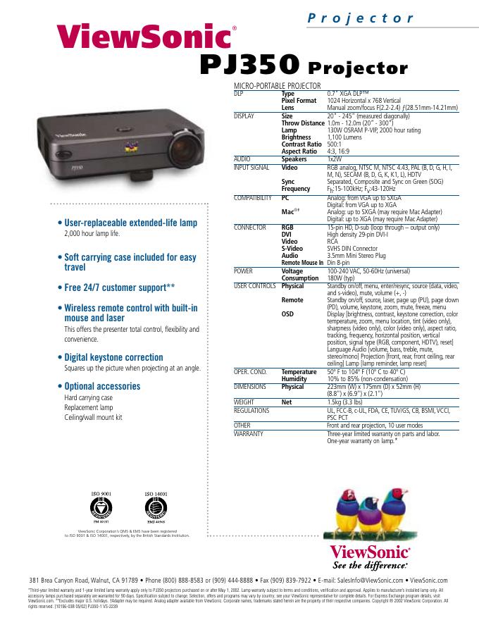 ViewSonic PJ350 Projector 使用手册.pdf