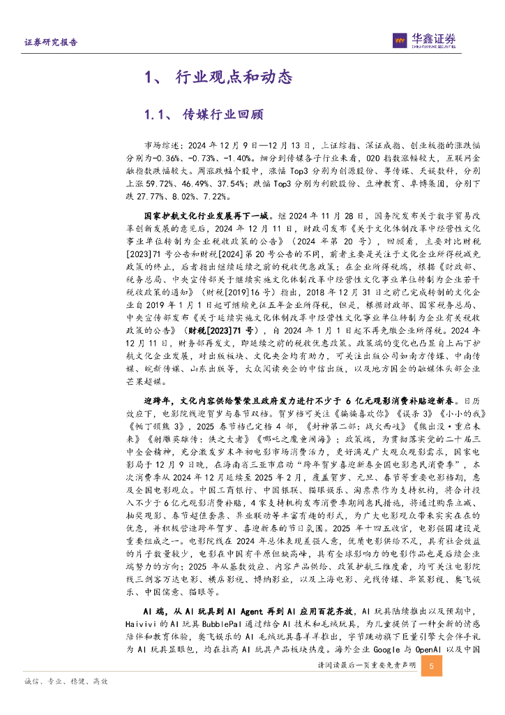华鑫证券:传媒行业周报:政策护航数字消费关注AI焕新应