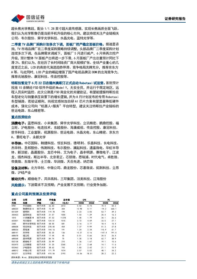 国信证券:电子行业周报:产业链景气依然维持较高水平,静待2Q25业绩花开.pdf