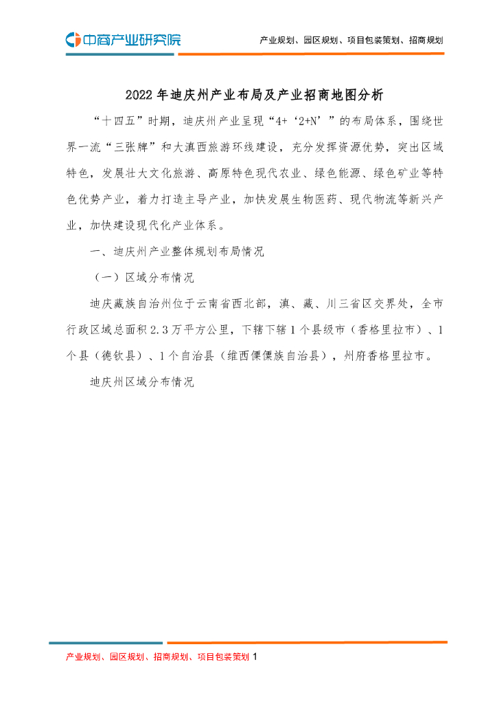 2022年迪庆州产业布局及产业招商地图分析.pdf