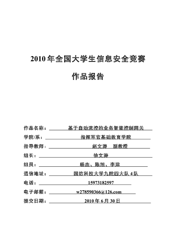 《计算机网络》学生作品-大学生信息安全竞赛---基于自动流控的业务智能控制网关.pdf