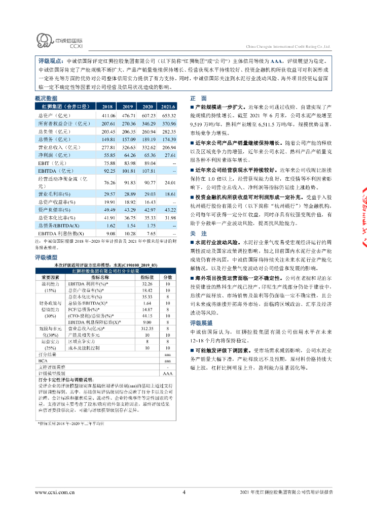 中诚信:2021年度红狮控股集团有限公司信用评级报告.pdf