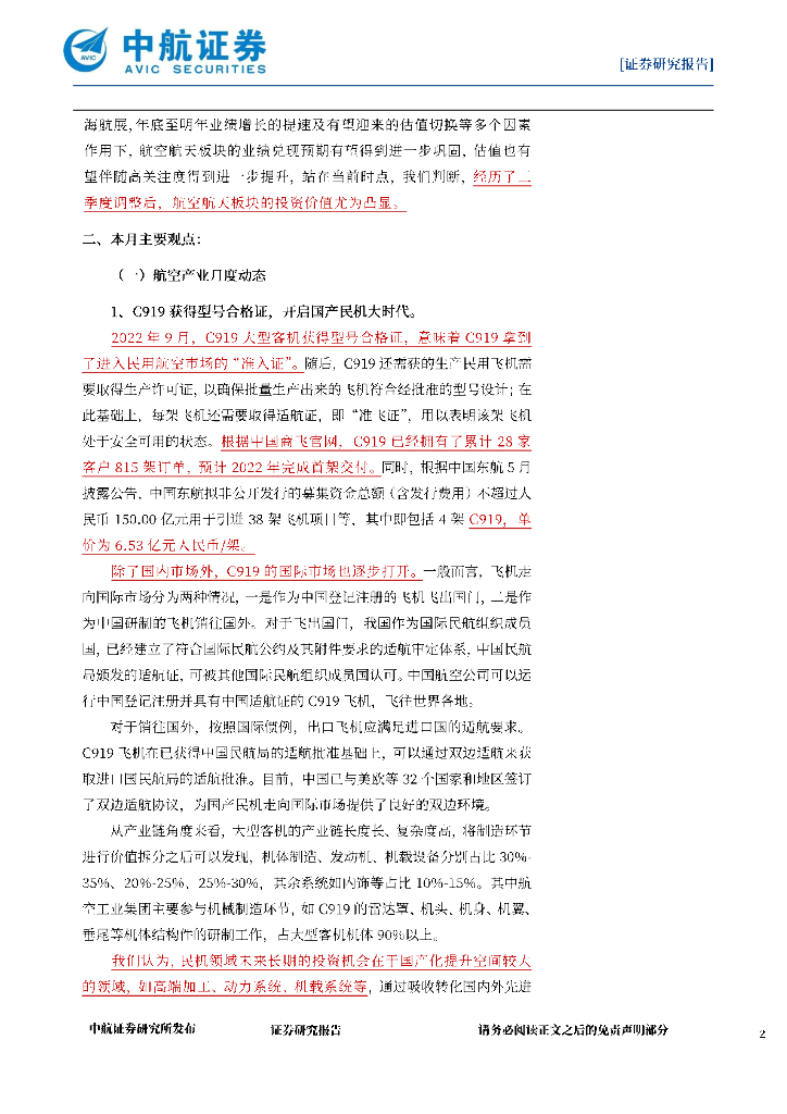 中航证券:航空航天产业月报:新型号、新发展、新动能.pdf